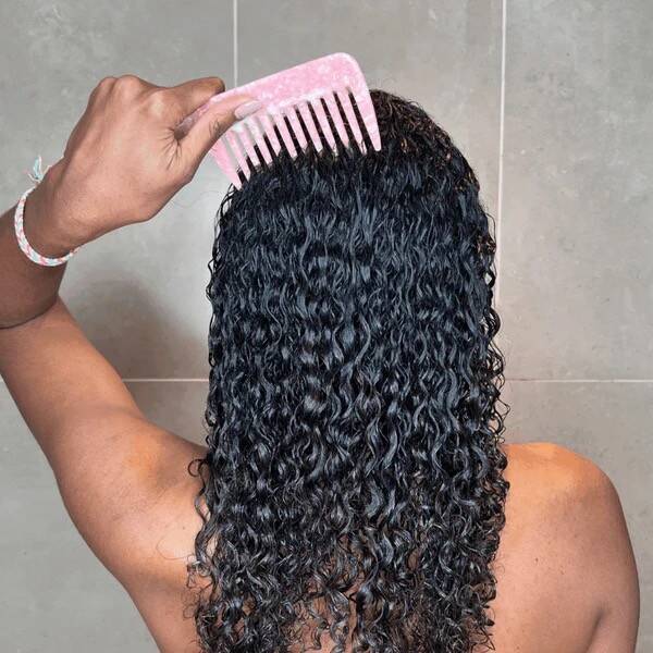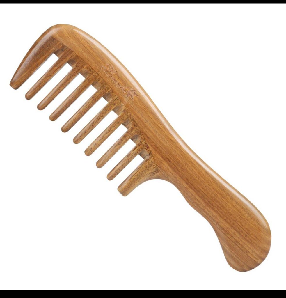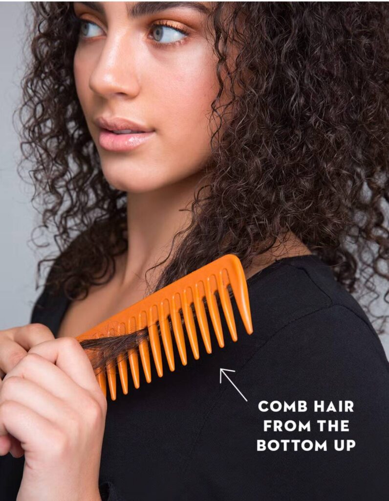 - Wide-Tooth Comb: A wide-tooth comb is a classic choice for curly hair because it glides through curls without pulling them apart or creating frizz. It’s gentle and works well for detangling in the shower.