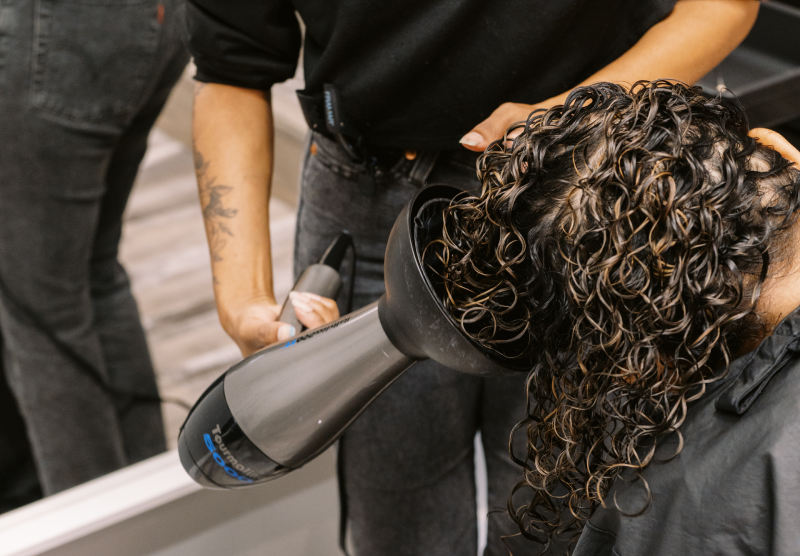 Dusting is a gentle trim that removes only the very ends of your hair, without changing your length or overall style. This service helps prevent split ends, maintain healthy curls, and keep your hair looking fresh between appointments.